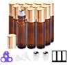 Essential Oil Roller Bottles 10ml (Amber Glass, 12pack, 2 Extra Roller Balls,24 Labels, Opener, 2 Funnels by PrettyCare) Roller Balls For Essential Oils, Roll on Bottles