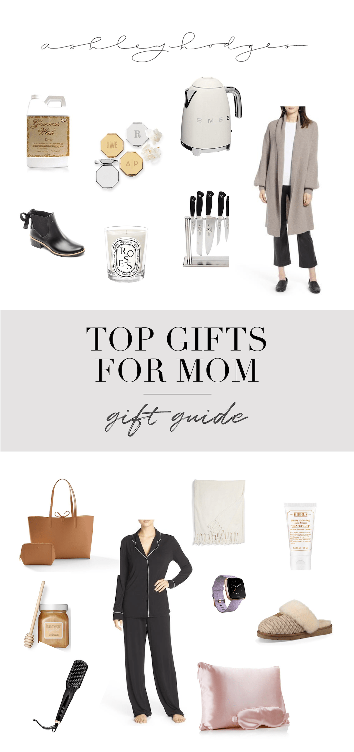 Glamorous Wash Laundry Detergent // Monogram Compact // Smeg Kettle // Halogen Cashmere Cardigan // Tempered Glass Knife Block // diptyque Roses Candle // Rain Boots // Mark & Graham Tote // Nordstrom Buttondown PJs // Nordstrom Throw Blanket // Kiehls Hand Cream // Laura Mercier Honey Bath // FitBit Smart Watch // Ugg Cozy K nit Slipper